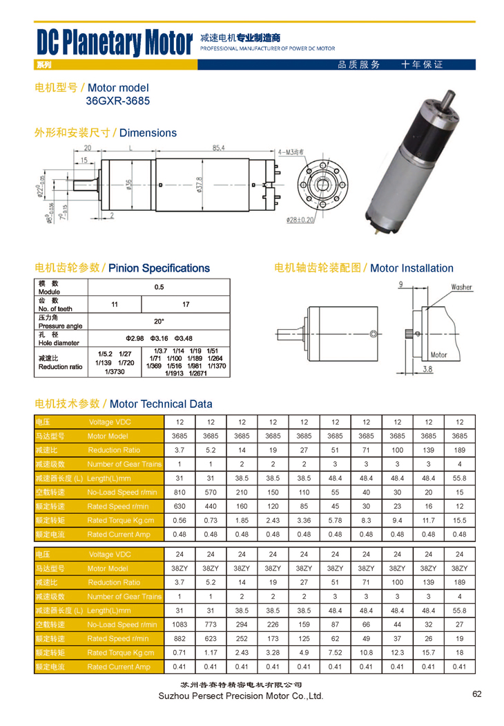 36GXR-3685行星减速电机