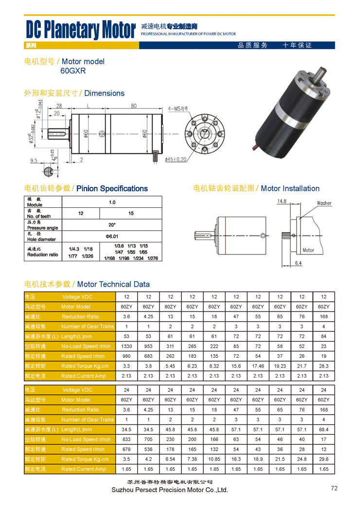60GXR行星减速电机